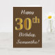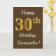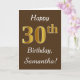 Tarjeta Brown, Faux Gold 30 cumpleaños + Nombre personaliz