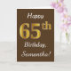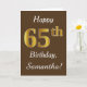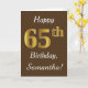 Tarjeta Brown, Faux Gold 65th Birthday + Custom Name