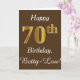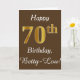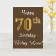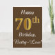 Tarjeta Brown, Faux Gold 70th Birthday + Custom Name