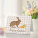 Tarjeta Brown Hare And Carrots Beige Gingham Happy Easter