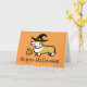 Izzy el corgi se viste todo para arriba y alista para Halloween en esta tarjeta de felicitación adorable.