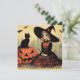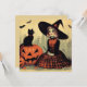 Esta es una carta de Halloween retro que muestra a una bruja en un gorra de brujas con un gato negro sentado en una calabaza. Hay murciélagos en el fondo. La tarjeta tiene un aspecto distintivo de los años 60 o 70. Es una tarjeta genial para usar como invitación, como tarjeta de felicitación o como tarjeta para regalar con un regalo. Esta carta será apreciada por cualquiera a quien le gusten las cosas espeluznantes, el arte retro y vintage y los ilustraciones y brujas.