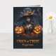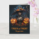 Tarjeta Bruja Halloween moderna con faroles Jack o'