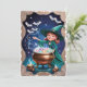 Tarjeta Bruja mágica de Halloween con Cauldron