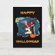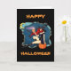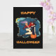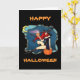 Bruja pelirroja II, un ilustracion fresco que ofrece a una bruja pelirroja hermosa que sostiene un enchufe encantado o' latern mientras que se sienta en una calabaza y un marco adornado con una luna creciente. Colores principales: azul, rojo, anaranjado, negro, púrpura y amarillo. El dibujo original fue hecho con los lápices y los acrilycs coloreados por el © E.D. Siffert del artista.