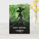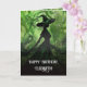Tarjeta de Cumpleaños de Bruja Pintada Malvadamente Bien - Esta tarjeta de saludo de cumpleaños presenta una pintura verde y negra de una bruja en un bosque encantado. Perfecta para el cumpleaños importante de cualquier niña o mujer de cualquier edad que ama la fantasía oscura y las cosas espeluznantes.