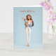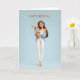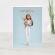 Tarjeta Brunette Girl in Blue Cardigan w/ White Bunny BDay