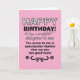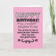 La hija en la ley prueba el buen gusto de su hijo, dice el frente de esta graciosa tarjeta de cumpleaños. La tarjeta fue diseñada con una suegra o un padre en mente que desea agregar humor al día de la esposa de su hijo mientras celebra envejecer un año más. El lindo mensaje en el interior paraliza el dulce cumplido en el frente en un halago, pero sorprendentemente humorístico, que hará reír a la esposa de la hija o del hijo.