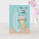 Enviar buenos deseos de suerte mientras alguien se prepara para hacer una prueba. Mantener la calma es importante antes del gran día. Este gracioso mapache lleva gafas de sol y se inclina en contra de una tabla de surf en la playa de arena. Hay algunas conchas de conchas por todas partes. ¡El personaje animal se ve muy fresco! Perfecta tarjeta encendida para añadir confianza y hacerles saber - ¡Tienes esto!