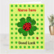 Tarjeta Buena suerte gran nombre personalizado ladybug clo