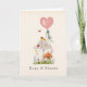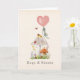 Valentín con temática de bosque acogedor que incluye ilustración de champiñones, flores silvestres y mariquitas con globo en forma de corazón. El texto dice "Bugs & Kisses".