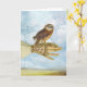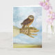 Un pequeño búho delicioso se sienta encima de una mano del Victorian. Una tarjeta perfecta para el entusiasta del amante o de la naturaleza del búho. Un regalo precioso para un cumpleaños, agradezca le o cualquier ocasión.