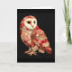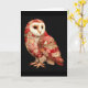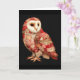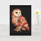 Tarjeta Búho Caprichoso de Parche con Patrón de Corazones