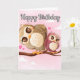 Tarjeta Búho de mamá adorable y bebé | Cumpleaños