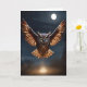 Tarjeta Búho Magnífico Volando de Noche sobre Fondo de Fue