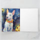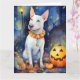 Tarjeta Bull Terrier de Halloween con calabazas espeluznan