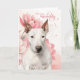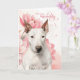 Tarjeta Bull Terrier Dog Pink Botanical Flowers Birthday