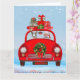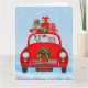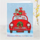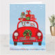 Tarjeta Bull Terrier Perro en coche con Papá Noel