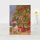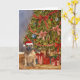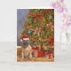 Esta tarjeta de Navidades incluye un retrato acuarela de un bulldog francés apuesto a un sombrero de Papá Noel sentado bajo un árbol de Navidad.