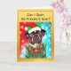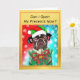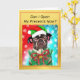 Di Felices Fiestas con este diseño vintage de Navidad Canina de la tienda Loud and Sassy. Cuenta con un adorable Bulldog Francés, que lleva un horrible suéter de Navidad, un sombrero de Santa y un collar de corona de Navidad con un lazo rojo y campanas doradas. Incluye un divertido juego de palabras de perro, "¿Puedo abrir mis regalos ahora?", que es todo lo que este lindo cachorro de pedigree quiere saber. También incluye los tradicionales Saludos de la Temporada. El texto es totalmente personalizable y se puede cambiar fácilmente a lo que desees para un toque verdaderamente personal. Ideal para amantes de los perros, aquellos a quienes les gustan los chistes divertidos, y perfecto para amantes de los animales que aman celebrar la temporada festiva con sus bebés peludos.