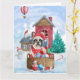 Tarjeta Bulldog Francés en casa de perro navideña con niev