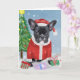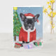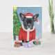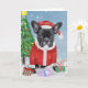 Tarjeta Bulldog Francés en la nieve con regalos de Navidad