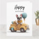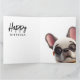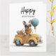 Tarjeta de Bulldog francés lindo en auto antiguo