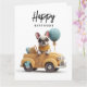 Tarjeta Bulldog francés lindo en auto antiguo
