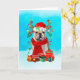Tarjeta Bulldog inglés en la nieve con regalos de Navidad