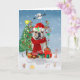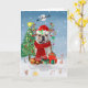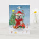 Tarjeta Bulldog Inglés en la nieve con regalos de Navidad