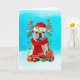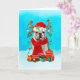 Tarjeta Bulldog inglés en la nieve con regalos de Navidade