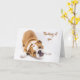Esta tarjeta Thinking of You tiene un cachorro de bulldog marrón con una cara muy linda contra un fondo blanco.
