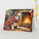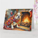 Tarjeta Bulldog Sitting by Fireplace with Christmas Lights