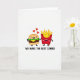 This Valentine’s Day card features a cheerful scene with two food characters sharing a happy moment together. A smiling hamburger stands beside a carton of fries, both drawn with friendly faces, small eyes, and rosy cheeks. The burger shows a sesame seed bun, crisp lettuce, and melted yellow cheese, while the fries sit snugly in a bright red container. Three red hearts float above them, showing affection and connection. The white background keeps the focus on the characters and their expressions. Below the illustration, bold lettering reads, “WE MAKE THE BEST COMBO,” making this card a fun way to celebrate love, friendship, or partnership