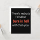 Son tu persona, tu mejor amigo, y lo más importante, alguien que ve la quema en el infierno como una actividad mejor hecha con otros... El texto blanco y rojo sobre fondo negro añaden al "drama" de este divertido diseño.