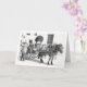 Tarjeta de felicitación con caballo blanco y negro y retrato de carreta antigua. Puede personalizar fácilmente este producto de forma gratuita si desea agregar texto o cambiar el color del fondo.