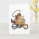 Tarjeta Caballo como vaquero con lazo y motocicleta