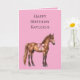 Tarjeta Caballo marrón rosado con cumpleaños trenzado