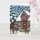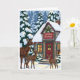 Tarjeta Cabaña acogedora de invierno con familia de ciervo
