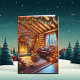 Tarjeta Cabaña acogedora y cálida y chimenea de Navidad