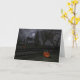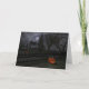 Tarjeta Cabaña de la bruja con la linterna de la calabaza