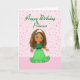 Esta tarjeta de cumpleaños se cabe cualquier princesa de la niña. El gráfico principal es princesa con el pelo marrón y los ojos azules, vestidos en un vestido rizado del verde largo con una correa verde de la cinta. Feliz cumpleaños, princesa. El texto interior y el gráfico del globo en el interior pueden ser corregidos.