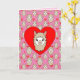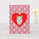 Tarjeta Cabeza De Llama Cuta Y Fondo Rosa De Corazón Rojo