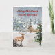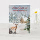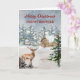 Feliz Navidad para la tarjeta de hermano con una encantadora escena de una rústica cabaña en el bosque con un ciervo en la nieve y un verso reflexivo.