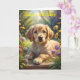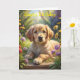 Un cachorro adorable en el jardín de flores. Adecuado para una tarjeta de cumpleaños para cualquiera. Siéntase libre de cambiar el texto