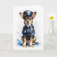 Adorable perrito listo para proteger y servir en esta tarjeta de felicitación en blanco.