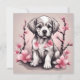Tarjeta Cachorro Adorable y Flores de Cerezo Rosadas