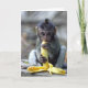 Tarjeta Cachorro bebé macaco disfrutando del plátano