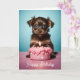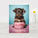 Una linda tarjeta de cumpleaños con temática de cachorro que incluye un cachorro dulce con una torta rosa en miniatura. Personalice editando la tarjeta de cumpleaños con su propio mensaje.