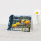 Una hermosa tarjeta floral de bienvenida en blanco con flores de amapola amarilla de bonito en el fondo de un tranquilo puerto deportivo con barcos en el puerto. Personalice el interior agregando una nota especial a un amigo o a un ser querido. Perfecto para un agradecimiento, perdértelo, o pensando en tu carta!